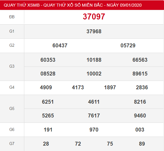 Kết quả quay thử XSMB 9/1/2020
