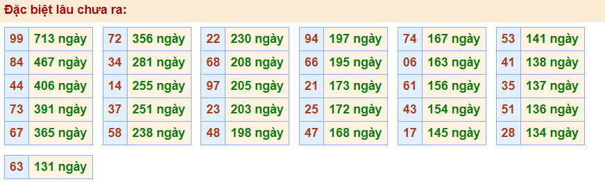 • Cặp 99 với 713 ngày chưa về giải đặc biệt