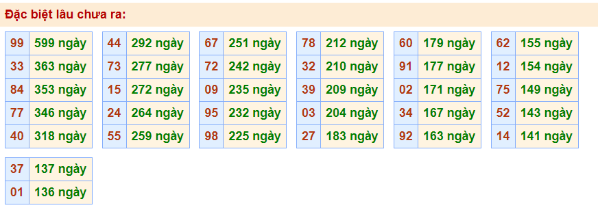 - Cặp 99 với 599 ngày chưa về giải đặc biệt