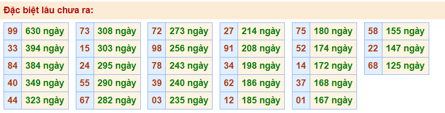 • Cặp 99 với 630 ngày chưa về giải đặc biệt