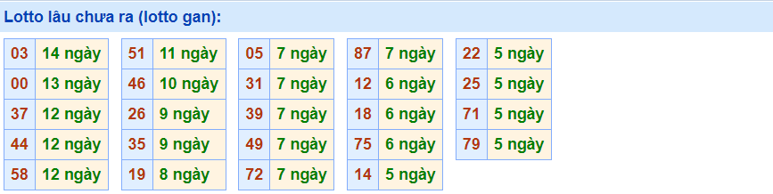 • Cặp số 03 đã 14 ngày chưa ra, cực đại là 27 ngày (từ 23/05/2012 đến 18/06/2012)
