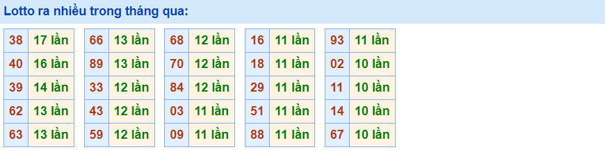 - Cặp 38 với 17 lần về trong tháng qua