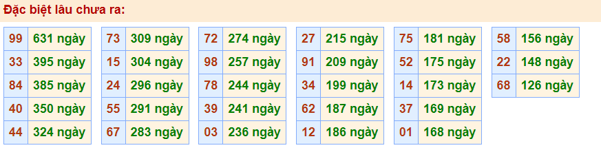 - Cặp 99 với 631 ngày chưa về giải đặc biệt