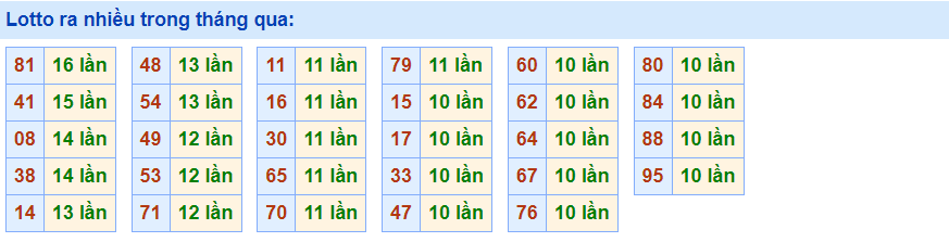- Cặp 81 với 16 lần về trong tháng qua