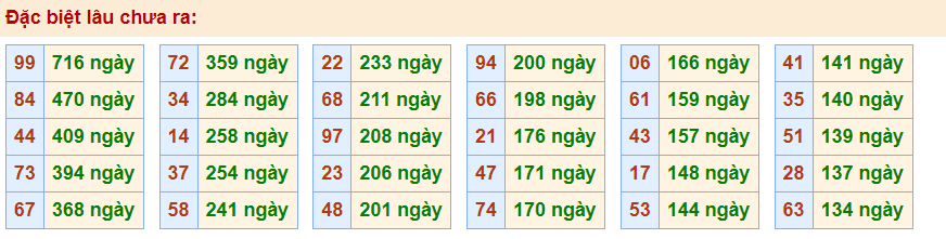 • Cặp 99 với 716 ngày chưa về giải đặc biệt