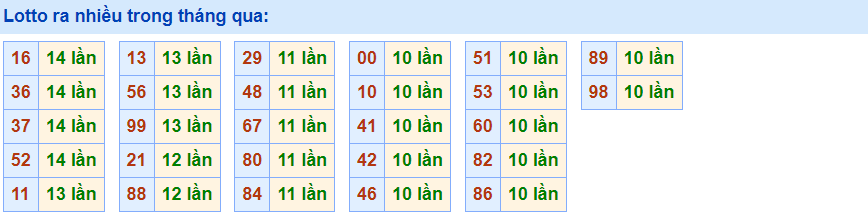• Cặp 16 với 14 lần về trong tháng qua