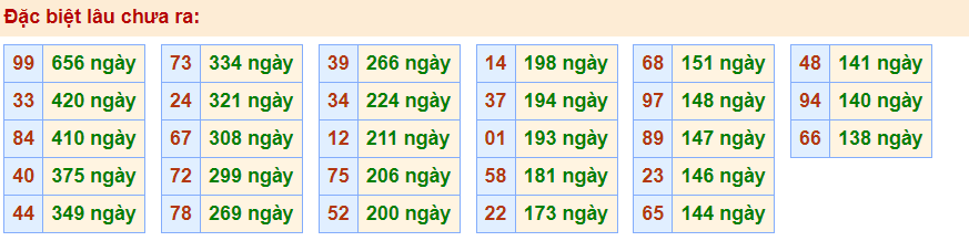 - Cặp 99 với 656 ngày chưa về giải đặc biệt