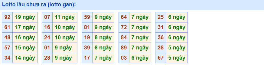 - Cặp số 92 đã 19 ngày chưa ra, cực đại là 26 ngày (từ 16/07/2009 đến 10/08/2009)