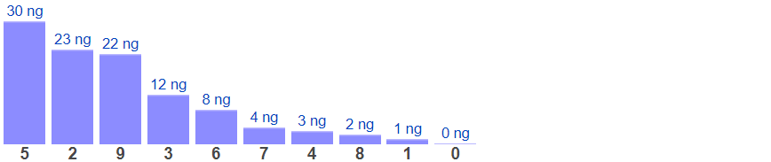 Thống kê cho thấy tổng lâu chưa xuất hiện nhất là tổng 5 (bao gồm 10 cặp số: 05, 14, 23, 32, 41, 50, 69, 78, 87, 96) đã 30 ngày chưa ra.