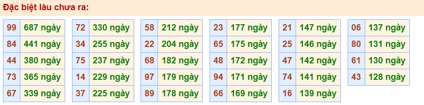 - Cặp 99 với 687 ngày chưa về giải đặc biệt