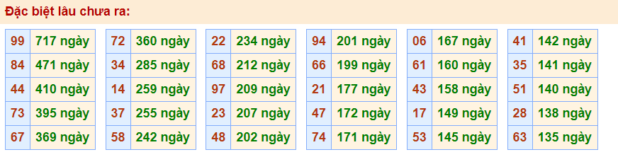 - Cặp 99 với 717 ngày chưa về giải đặc biệt