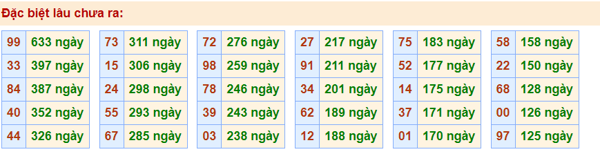 • Cặp 99 với 633 ngày chưa về giải đặc biệt