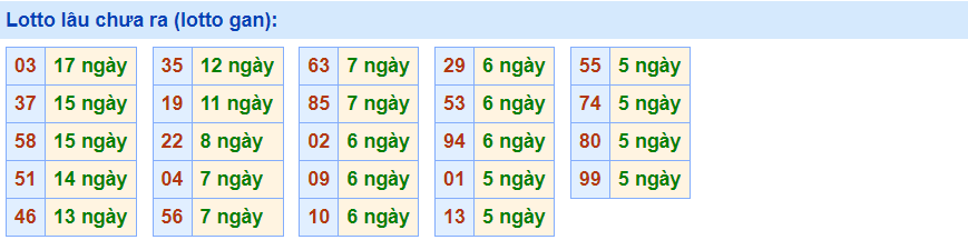 • Cặp số 03 đã 17 ngày chưa ra, cực đại là 27 ngày (từ 23/05/2012 đến 18/06/2012)