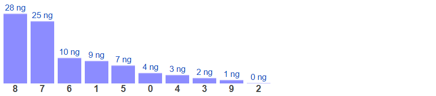 Thống kê cho thấy tổng lâu chưa xuất hiện nhất là tổng 8 (bao gồm 10 cặp số: 08, 17, 26, 35, 44, 53, 62, 71, 80, 99) đã 28 ngày chưa ra.