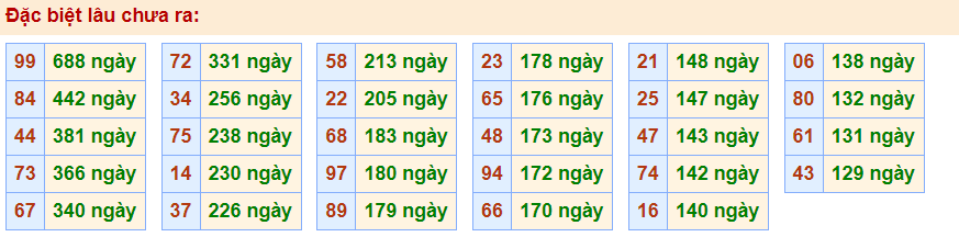 • Cặp 99 với 688 ngày chưa về giải đặc biệt