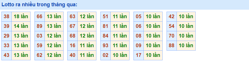 • Cặp 39 với 14 lần về trong tháng qua