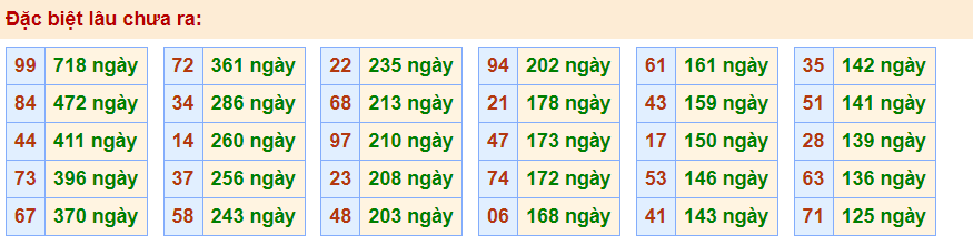 - Cặp 99 với 718 ngày chưa về giải đặc biệt