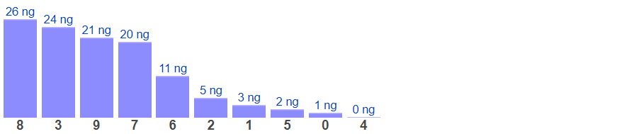 Thống kê cho thấy tổng lâu chưa xuất hiện nhất là tổng 8 (bao gồm 10 cặp số: 08, 17, 26, 35, 44, 53, 62, 71, 80, 99) đã 26 ngày chưa ra.