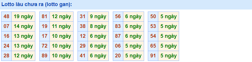 - Cặp số 48 đã 19 ngày chưa ra, cực đại là 27 ngày (từ 05/08/2016 đến 31/08/2016)