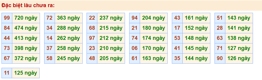 • Cặp 99 với 720 ngày chưa về giải đặc biệt