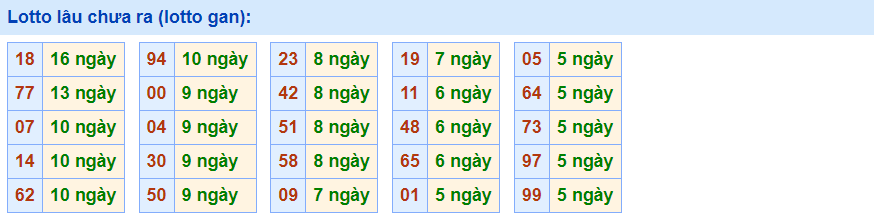 • Cặp số 18 đã 16 ngày chưa ra, cực đại là 30 ngày (từ 13/09/2015 đến 12/10/2015)