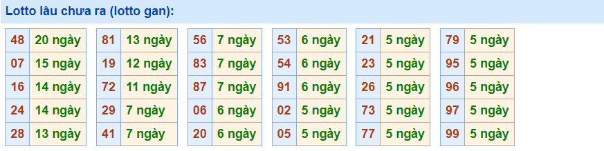 • Cặp số 48 đã 20 ngày chưa ra, cực đại là 27 ngày (từ 05/08/2016 đến 31/08/2016)