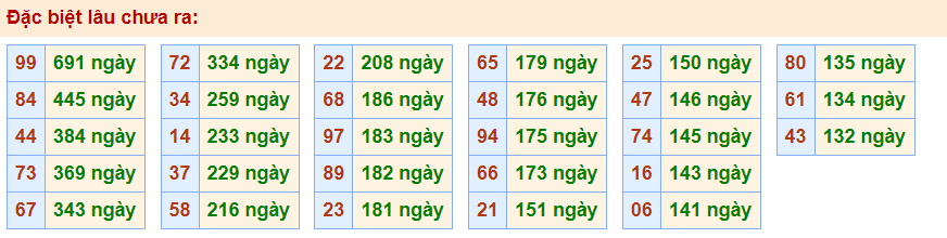 - Cặp 99 với 691 ngày chưa về giải đặc biệt