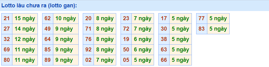 - Cặp số 21 đã 15 ngày chưa ra, cực đại là 28 ngày (từ 07/05/2016 đến 03/06/2016)
