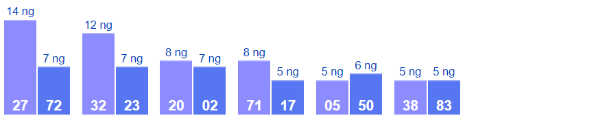 - Cặp số 27 đã 14 ngày chưa ra, cực đại là 24 ngày (từ 21/02/2012 đến 15/03/2012)