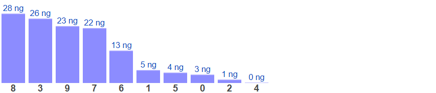Thống kê cho thấy tổng lâu chưa xuất hiện nhất là tổng 8 (bao gồm 10 cặp số: 08, 17, 26, 35, 44, 53, 62, 71, 80, 99) đã 28 ngày chưa ra.