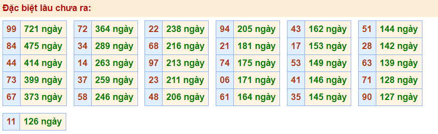 - Cặp 99 với 721 ngày chưa về giải đặc biệt