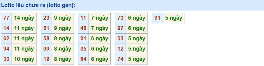 - Cặp 44 với 414 ngày chưa về giải đặc biệt