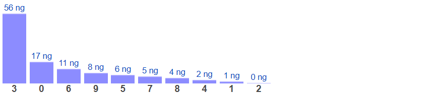 Thống kê cho thấy tổng lâu chưa xuất hiện nhất là tổng 3 (bao gồm 10 cặp số: 03, 12, 21, 30, 49, 58, 67, 76, 85, 94) đã 56 ngày chưa ra.