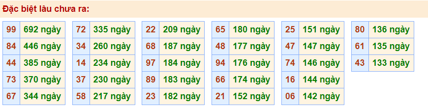 - Cặp 99 với 692 ngày chưa về giải đặc biệt