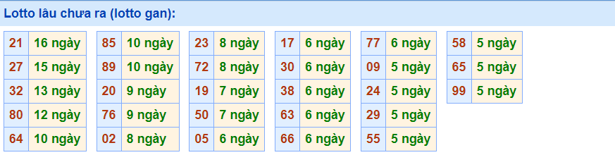 - Cặp số 21 đã 16 ngày chưa ra, cực đại là 28 ngày (từ 07/05/2016 đến 03/06/2016)