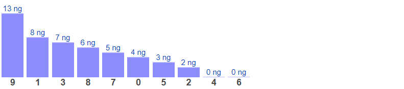Thống kê cho thấy chạm lâu chưa xuất hiện nhất là chạm 9 (bao gồm 19 cặp số có chứa số 9), đã 13 ngày chưa ra.