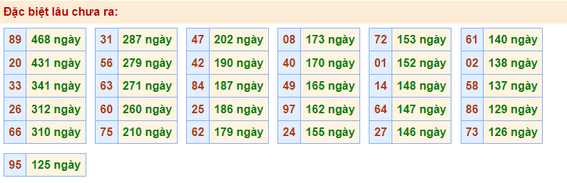 - Cặp 89 với 468 ngày chưa về giải đặc biệt