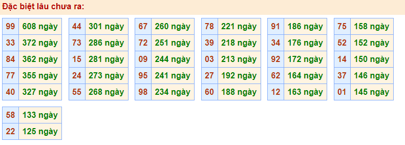 • Cặp 99 với 608 ngày chưa về giải đặc biệt
