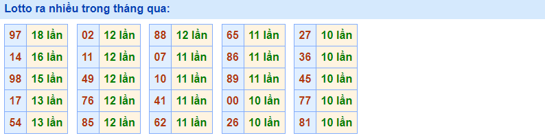 • Cặp 97 với 18 lần về trong tháng qua