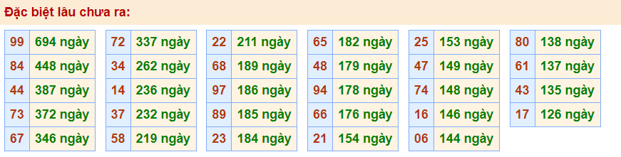 - Cặp 99 với 694 ngày chưa về giải đặc biệt