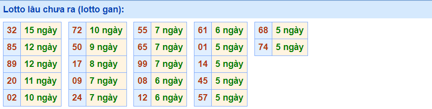 - Cặp số 32 đã 15 ngày chưa ra, cực đại là 24 ngày (từ 24/09/2020 đến 17/10/2020)