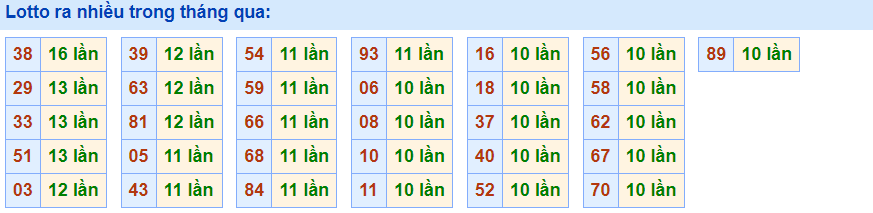 - Cặp 38 với 18 lần về trong tháng qua