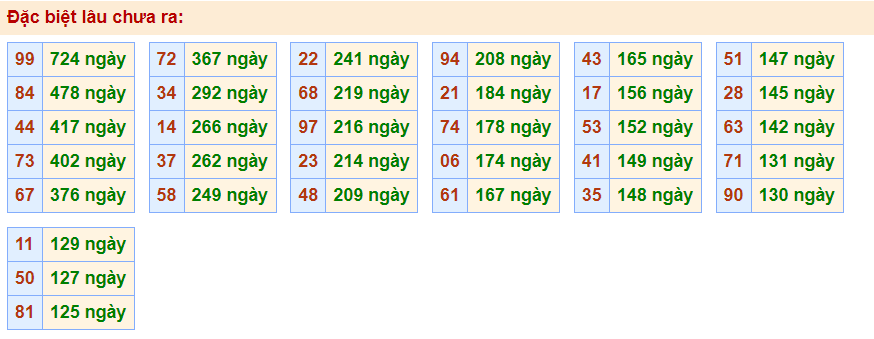 - Cặp 99 với 724 ngày chưa về giải đặc biệt