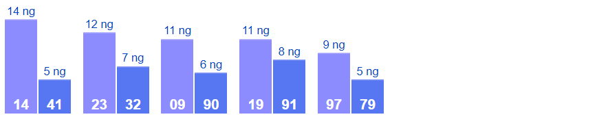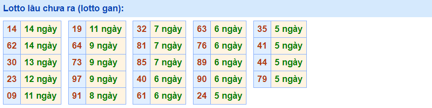 - Cặp số 14 đã 14 ngày chưa ra, cực đại là 33 ngày (từ 14/01/2020 đến 15/02/2020)