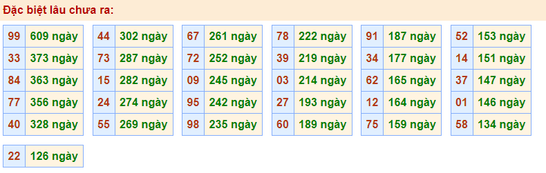 - Cặp 99 với 609 ngày chưa về giải đặc biệt