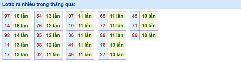 - Cặp 97 với 18 lần về trong tháng qua