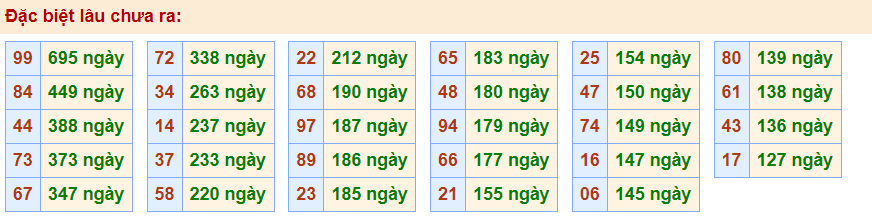 - Cặp 99 với 695 ngày chưa về giải đặc biệt