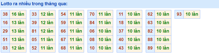 - Cặp 38 với 16 lần về trong tháng qua