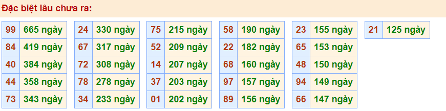 • Cặp 99 với 665 ngày chưa về giải đặc biệt