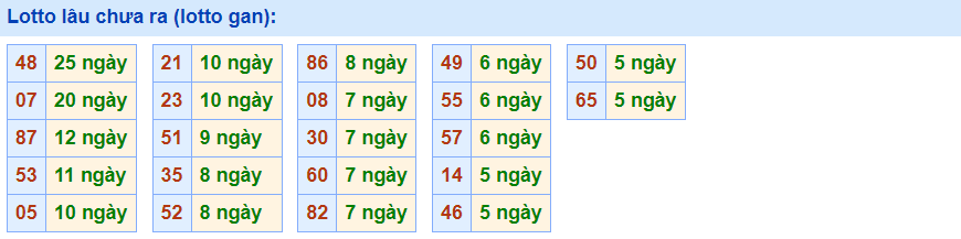 • Cặp số 48 đã 25 ngày chưa ra, cực đại là 27 ngày (từ 05/08/2016 đến 31/08/2016)